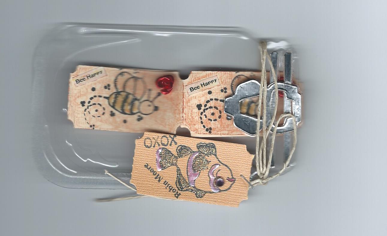 I laminated this strip. I used some confetti sun's, they are from "Confetti Spaghetti", which I bought 30 yrs ago when I started rubberstamping. Stickers are from Mrs. Grossmen...Do you guys remember those wonderful stickers... I have a lot of them...hording pile...lolroflmao!!
